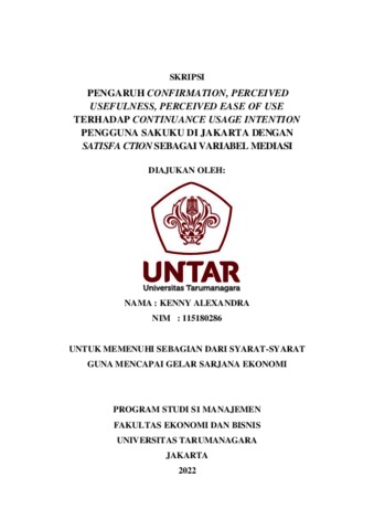ALEXANDRA, KENNY (2022) PENGARUH CONFIRMATION, PERCEIVED USEFULNESS, PERCEIVED EASE OF USE TERHADAP CONTINUANCE USAGE INTENTION PENGGUNA SAKUKU DI JAKARTA DENGAN SATISFA CTION SEBAGAI VARIABEL MEDIASI. Skripsi thesis, Universitas Tarumanagara.