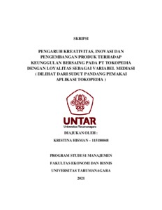 HISMAN, KRISTINA (2022) PENGARUH KREATIVITAS, INOVASI DAN PENGEMBANGAN PRODUK TERHADAP KEUNGGULAN BERSAING PADA PT TOKOPEDIA DENGAN LOYALITAS SEBAGAI VARIABEL MEDIASI ( DILIHAT DARI SUDUT PANDANG PEMAKAI APLIKASI TOKOPEDIA ). Skripsi thesis, Universitas Tarumanagara.