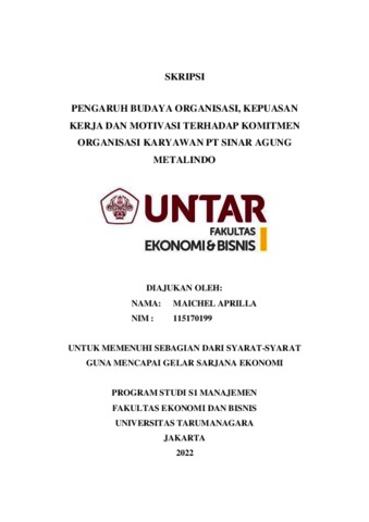 APRILLA, MAICHEL (2022) PENGARUH BUDAYA ORGANISASI, KEPUASAN KERJA DAN MOTIVASI TERHADAP KOMITMEN ORGANISASI KARYAWAN PT SINAR AGUNG METALINDO. Skripsi thesis, Universitas Tarumanagara.