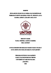 MARSHA, MEIFIKA AGENIA (2022) PENGARUH LINGKUNGAN KERJA DAN KOMPENSASI TERHADAP MOTIVASI KERJA PADA PT. EDUKITA JAYA GLOBAL (EDIGY) JAKARTA SELATAN. Skripsi thesis, Universitas Tarumanagara.