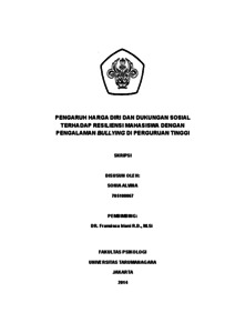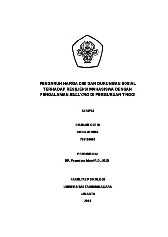 Alvina, Sonia (2022) Pengaruh Harga Diri dan Dukungan Sosial Terhadap Resiliensi Mahasiswa Dengan Pengalaman Bullying di Perguruan Tinggi. Skripsi thesis, Universitas Tarumanagara.