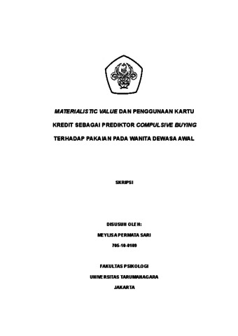 Sari, Meylisa Permata (2022) Materialistic Value dan Penggunaan Kartu Kredit sebagai Prediktor Compulsive Buying terhadap Pakaian pada Wanita Dewasa Awal. Skripsi thesis, Universitas Tarumanagara.