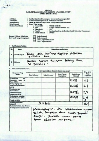 Siufui Hendrawan, hasil peer and Gabriella Cindy Clarissa, hasil peer and Graffy Intania, hasil peer (2021) Seri Publikasi Ilmiah Kontemporer Universitas Tarumanagara 2021. In: Kekebalan Terhadap Covid-19: Antibodi dan Vaksinasi. Kampus Merdeka Indonesia Jaya, - (-). Universitas Tarumanagara, -, pp. 344-366. ISBN 978-623-6463-15-4
