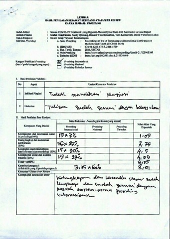 Siufui hendrawan, Hasil Peer and Sandy Qlintang, Hasil Peer and Ronald Winardi Kartika, Hasil Peer and Vera Kurniawati, Hasil Peer and David Victorious Lukas, Hasil Peer (2021) Severe COVID-19 Treatment Using Hypoxic-Mesenchymal Stem Cell Secretome: A Case Report. In: Proceeding of the lst Tarumanagara International Conference on Medicine and Health (TICMIH 2021), 1 Desember 2021, UNTAR.