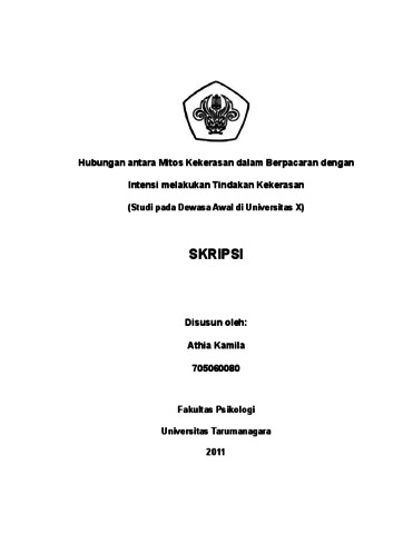 Kamila, Athia (2022) Hubungan antara Mitos kekerasan dalam berpacaran dengan Intensi melakukan tindakan kekerasan pada dewasa muda di Universitas X. Skripsi thesis, Universitas Tarumanagara.