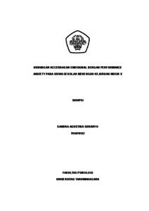 Sunaryo, Sandra Agustina (2022) Hubungan antara kecerdasan emosional dengan performance anxiety pada siswa Sekolah Menengah Kejuruan Musik (SMKM). Skripsi thesis, Universitas Tarumanagara.