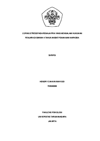 Wahyudi, Hendry Cahaya (2022) Coping Stress pada Remaja Pria yang mengalami Hukuman Penjara di bawah Empat Tahun Akibat Pemakaian Narkoba. Skripsi thesis, Universitas Tarumanagara.