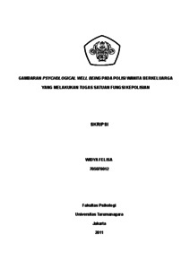 Felisa, Widya (2022) Gambaran psychological well being pada polisi wanita yang melakukan tugas satuan fungsi kepolisian (studi pada mabes polri). Skripsi thesis, Universitas Tarumanagara.