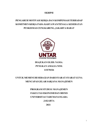 AMALIA, PYNGKAN (2021) PENGARUH MOTIVASI KERJA DAN KOMPENSASI TERHADAP KOMITMEN KERJA PADA KARYAWAN/TENAGA KESEHATAN PUSKESMAS CENGKARENG, JAKARTA BARAT. Skripsi thesis, Universitas Tarumanagara.