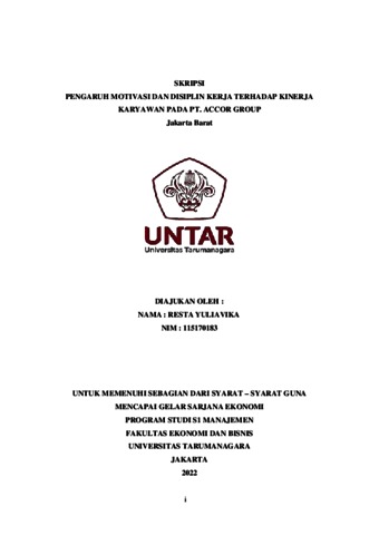 YULIAVIKA, RESTA (2022) PENGARUH MOTIVASI DAN DISIPLIN KERJA TERHADAP KINERJA KARYAWAN PADA PT. ACCOR GROUP Jakarta Barat. Skripsi thesis, Universitas Tarumanagara.