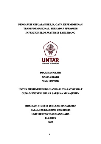 Rivaldi, Rivaldi (2022) PENGARUH KEPUASAN KERJA, GAYA KEPEMIMPINAN TRANSFORMASIONAL, TERHADAP TURNOVER INTENTION ELOK WATER DI TANGERANG. Skripsi thesis, Universitas Tarumanagara.