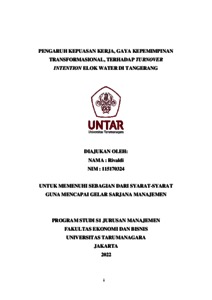 Kata Kunci : kepuasan kerja, gaya kepemimpinan transformastional, turnover intention
