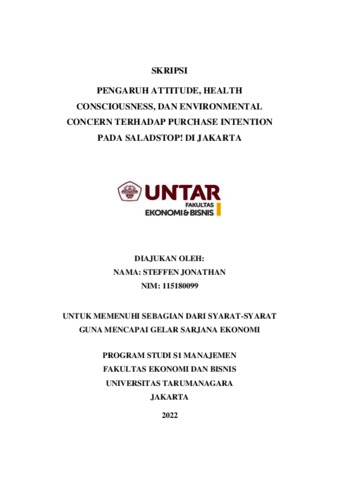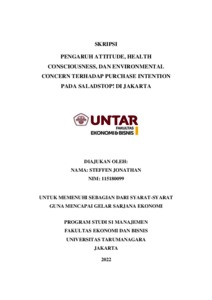 JONATHAN, STEFFEN (2022) PENGARUH ATTITUDE, HEALTH CONSCIOUSNESS, DAN ENVIRONMENTAL CONCERN TERHADAP PURCHASE INTENTION PADA SALADSTOP! DI JAKARTA. Skripsi thesis, Universitas Tarumanagara.