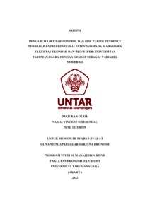 DJIEREMIAL, VINCENT (2022) PENGARUH LOCUS OF CONTROL DAN RISK TAKING TENDENCY TERHADAP ENTREPRENEURIAL INTENTION PADA MAHASISWA FAKULTAS EKONOMI DAN BISNIS (FEB) UNIVERSITAS TARUMANAGARA DENGAN GENDER SEBAGAI VARIABEL MODERASI. Skripsi thesis, Universitas Tarumanagara.