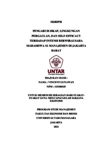 GUNAWAN, VINCENT (2022) PENGARUH SIKAP, LINGKUNGAN PERGAULAN, DAN SELF-EFFICACY TERHADAP INTENSI BERWIRAUSAHA MAHASISWA S1 MANAJEMEN DI JAKARTA BARAT. Skripsi thesis, Universitas Tarumanagara.
