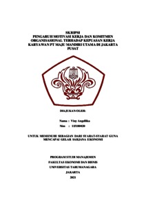 Angellika, Viny (2021) PENGARUH MOTIVASI KERJA DAN KOMITMEN ORGANISASIONAL TERHADAP KEPUASAN KERJA KARYAWAN PT MAJU MANDIRI UTAMA DI JAKARTA PUSAT. Skripsi thesis, Universitas Tarumanagara.