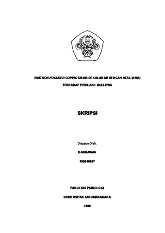 Darmawan, Darmawan (2022) Emotion-focused Coping Siswa SMA Terhadap Perilaku Bullying. Skripsi thesis, Universitas Tarumanagara.