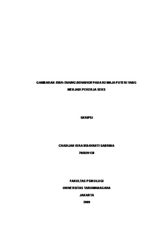 Sabrina, Chadijah Isra Irdayanti (2022) Gambaran Risk-Taking Behavior Pada Remaja Puteri yang Menjadi Pekerja Seks. Skripsi thesis, Universitas Tarumanagara.