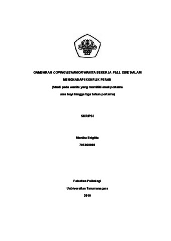 Brigitta, Monika (2022) Gambaran Coping Behavior Wanita Bekerja Full Time yang Memiliki Anak Pertama Usia Bayi hingga Tiga Tahun Pertama dalam Menghadapi Konflik Peran. Skripsi thesis, Universitas Tarumanagara.