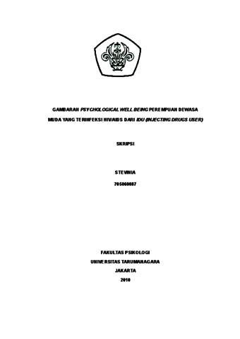 Stevinia, Stevinia (2022) Gambaran Psychological Well Being Perempuan Dewasa Muda Yang Terinfeksi HIV/AIDS Dari Injecting Drugs User. Skripsi thesis, Universitas Tarumanagara.