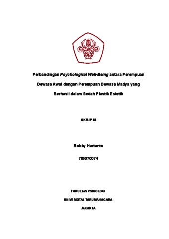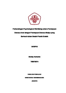 Hartanto, Bobby (2022) Perbandingan Psychological Well-Being pada perempuan dewasa awal dan perempuan dewasa madya yang berhasil dalam bedah plastik estetik. Skripsi thesis, Universitas Tarumanagara.