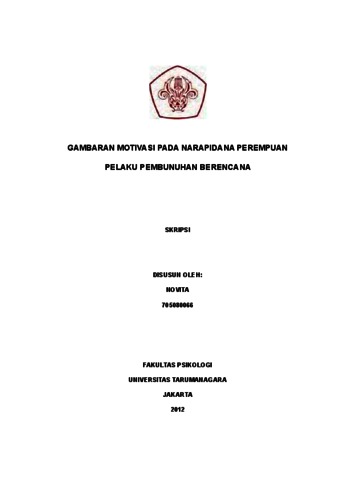 Novita, Novita (2022) Gambaran Motivasi Pada Narapidana Perempuan Pelaku Pembunuhan Berencana. Skripsi thesis, Universitas Tarumanagara.