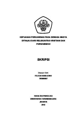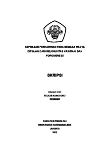 Kanggono, Felicia (2022) Kepuasan Perkawinan pada Dewasa Madya Ditinjau dari Religiusitas Kristiani dan Forgiveness. Skripsi thesis, Universitas Tarumanagara.
