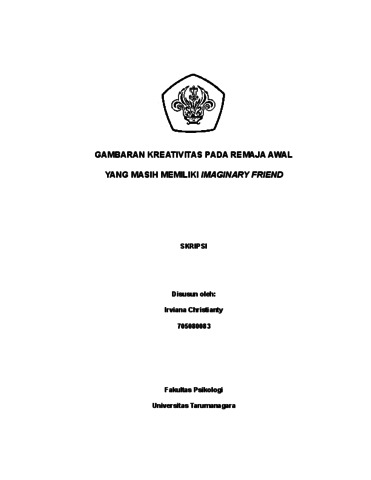 Christianty, Irviana (2022) Gambaran Kreativitas pada Remaja Awal yang masih Memiliki Imaginary Friend. Skripsi thesis, Universitas Tarumanagara.