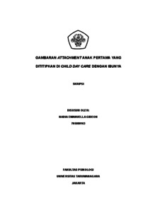 Gideon, Nadia Emanuella (2022) Gambaran attachment (kelekatan) bayi (anak pertama) dengan ibunya yang menitipkan anaknya di child day care (tempat penitipan anak). Skripsi thesis, Universitas Tarumanagara.
