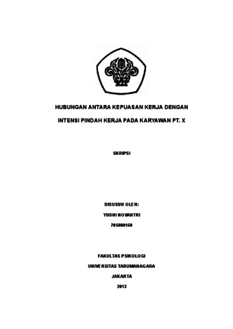 Novantri, Yudhi (2022) Hubungan Antara Kepuasan Kerja Dengan Intensi Pindah Kerja Pada Karyawan PT. X. Skripsi thesis, Universitas Tarumanagara.