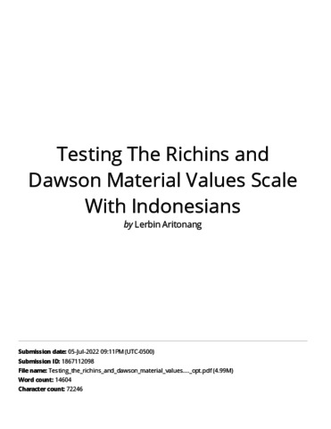 Lerbin R. Aritonang, Turnitin (2015) Turnitin ” Testing Richins And Dawson Material Values Scale For Indonesians “. ” Testing Richins And Dawson Material Values Scale For Indonesians “ (23). pp. 1-25. ISSN 978-602-14716-2-3
