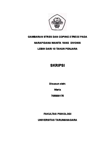 Maria, Maria (2022) Gambaran Stres dan Coping Stres pada Narapidana Wanita yang Divonis Lebih dari 10 Tahun Penjara. Skripsi thesis, Universitas Tarumanagara.