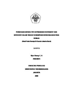 Renny, Njoo (2022) Perbandingan tingkat kemampuan bersosialisasi antara tipe kepribadian ekstrovert dan introvert pada remaja. Skripsi thesis, Universitas Tarumanagara.
