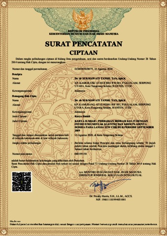 Dr. dr. SUKMAWATI TANSIL TAN, Sp.KK (2020) URL Dokumen “KARYA ILMIAH : PERBAIKAN HIDRASI KULIT DENGAN INTERVENSI MINYAK KLENTIQ DAN KRIM PLASENTA DOMBA PADA LANSIA STW CIBUBUR PERIODE SEPTEMBER 2019“. EC00202028079.