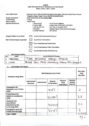 Harahap, Shela Oktaharyani and Djaja, Benny (2021) Peer Review : Kekuatan Hukum Akta Jual Beli yang Ditanya Merupakan Data Palsu (Studi Kasus Putusan Pengadilan Negeri Depok Nomor 226/PDT.G/2018/PN.DPK). Jurnal Hukum Adigama, 4 (2). ISSN E: 2655-7343, P: 2747-0873