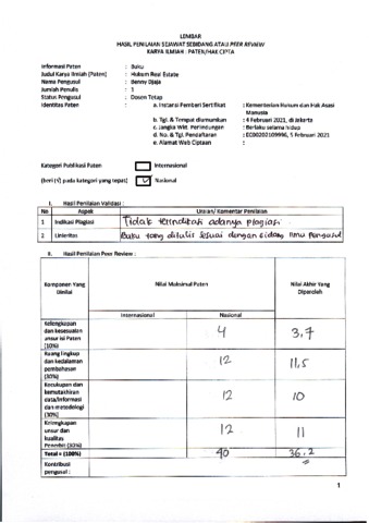 Benny Djaja (2021) Peer Review : Hukum Real Estate. EC00202109996.