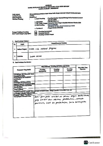 Tan, Sukmawati Tansil Peer Review + reviewer “Uji pendahuluan perbaikan kadar hidrasi kulit dengan intervensi minyak klentiq pada lansia“. Prosiding Seminar Nasional Biologi Di Era Pandemi Covid-19. ISSN 978-602-72245-5-1 (Unpublished)