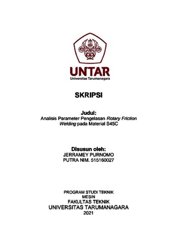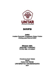 Putra, Jerramey Purnomo (2021) Analisis parameter pengelasan rotary friction welding pada material S45c (TM - 1320). Skripsi thesis, Universitas Tarumanagara.