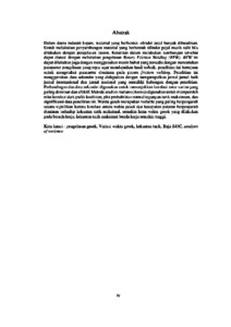 dilakukan dengan pengelasan fusion. Kesulitan dalam melakukan sambungan tersebut dapat diatasi dengan melakukan pengelasan Rotary Friction Welding (RFW). RFW ini dapat dilakukan juga dengan menggunakan mesin bubut yang tersedia dengan menentukan parameter pengelasan yang tepat agar mendapatkan hasil terbaik. penelitian ini bertujuan untuk mengetahui parameter dominan pada proses friction welding. Penelitian ini menggunakan data sekunder yang didapatkan dengan mengumpulkan jurnal-jurnal baik jurnal internasional dan jurnal nasional yang memiliki hubungan dengan penelitian. Perbandingan dua data sekunder digunakan untuk menunjukkan korelasi antar varian yang paling dominan dan efektif. Metode analisis varians (Anova) digunakan untuk memperoleh nilai korelasi dari grafik koefisien, plot probabilitas normal tegangan tarik maksimum, dan signifikansi data penelitian ini. Waktu gesek merupakan variable yang paling berpengaruh secara signifikan karena korelasi antara waktu gesek dan kecepatan putaran berpengaruh dominan terhadap kekuatan tarik maksimal, semakin lama waktu gesek yang dilakukan pada bernda kerja, kekuatan tarik maksimal benda kerja semakin tinggi. Kata kunci : pengelasan gesek, Variasi waktu gesek, kekuatan tarik, Baja S45C, analysis of variance