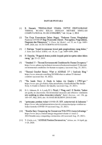 Bangunan yang mencapai kenyamanan termal itu dapat membuat ruang aktivitas yang baik kepada orang-orang yang menggunakannya agar terhindar dari efek iklim luar yang tidak baik, sehingga kegiatan yang dilakukan dalam bangunan dapat dilakukan dengan maksimal. Salah satu syarat kenyamanan termal adalah sirkulasi udara yang baik, sirkulasi udara yang baik juga dapat mencegah penyebaran virus COVID-19 yang sedang melanda dunia saat ini. Oleh sebab itu, diperlukan penelitian untuk menganalisis rekayasa pengaliran udara pada ruangan terutama ruang kelas untuk mendapatkan hasil yang nantinya akan terlihat apakah sudah memenuhi tuntutan kenyamanan ruang khususnya kenyamanan termal. Tujuan dari penelitian ini adalah Menghasilkan model 3 dimensi dari ruang kelas L609 dan melakukan analisis CFD terhadap sirkulasi udara dalam ruang kelas yang dapat untuk mewujudkan terjadinya kenyamanan termal. Berdasarkan seluruh hasil simulasi yang dilakukan dengan 2 konfigurasi outlet dan 5 konfigurasi speed fan yang berbeda, maka didapatkan konfigurasi yang paling baik sesuai dengan standar ASHRAE 55 tahun 2017 adalah konfigurasi kedua dengan outlet celah pintu dan speed fan ke-5 (4,7 m/s). Pada konfigurasi ini, dapat diketahui temperatur ruangan antara 295,6 K sampai 301,2 K dan kecepetan aliran udara dalam ruang sebesar 0,290234 m/s. Akan tetapi dengan pertimbangan adanya pandemi COVID-19, harus adanya sirkulasi udara agar dapat memecah konsentrasi aerosol dari virus COVID-19 itu sendiri. Maka dari itu penulis merekomendasikan untuk menggunakan konfigurasi kelas dengan pintu terbuka agar sirkulasi udara dapat mengalir dengan baik. Kata kunci: kenyamanan termal, CFD, sirkulasi udara