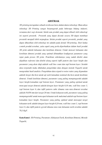3D printing merupakan sebuah terobosan baru dalam dunia teknologi. Munculnya teknologi 3D Printing sangat berpengaruh pada beberapa bidang industri, terutama dari segi ekonomi. Salah satu produk yang dapat dihasil oleh teknologi ini seperti prostetik. Prostetik yang dapat dicetak secara 3D dapat membuat prostetik menjadi lebih terjangkau. Selain produk seperti prostetik, produk yang dapat dihasilkan oleh teknologi ini adalah pada dental 3D printing. Dari kedua contoh produk tersebut, yaitu aspek yang perlu diperhatikan dalam hasil produk 3D print adalah kekuatan dan ketelitian dimensi. Untuk mencari kekuatan dan ketelitian dimensi produk yang optimal dibutuhkan konfigurasi parameter yang tepat pada proses 3D print. Penelitian sebelumnya yang sudah diteliti akan dijadikan referensi dan diteliti ulang seperti infill pattern dan layer height dan parameter yang akan diuji adalah wall line count dan top/ bottom layer. Setelah data terpenuhi maka dilakukan pengolahan data dengan metode Taguchi untuk mengetahui hasil analisis. Pengolahan data signal-to noise ratios yang digunakan adalah larger-the-best untuk uji tarik kemudian nominal-the-best untuk ketelitian dimensi. Untuk ketelitian dimensi, parameter yang paling mempengaruhi adalah layer height kemudian top/ bottom layer. Paramater yang paling optimal untuk mencapai target dimensi adalah dengan layer height 0,16 mm, wall line count 3, top/ bottom layer 6, dan infill pattern cubic dimana rata-rata dimensi tersebut adalah 19,856 mm dari target 20 mm. Untuk kekuatan tarik, parameter yang paling mempengaruhil untuk mencapai kekuatan tarik maksimal adalah top/ bottom layer kemudian layer height. Parameter yang paling optimal untuk mencapai target kekuatan tarik adalah dengan layer height 0,24 mm, wall line count 1, top/ bottom layer 6, dan infill pattern gyroid dimana rata-rata kekuatan tarik tersebut adalah 78,3 KgF. Kata Kunci: 3D Printing, Parameter, Kekuatan Tarik, Ketelitian Dimensi, Metode Taguchi