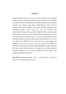 Gudang dibutuhkan oleh para marketplace untuk menyimpan dan mengalirkan barang dari supplier sehingga dibutuhkan Warehouse Management System (WMS) yang efektif dan efisien. Pengukuran kinerja WMS diperlukan untuk mengetahui efektivitas dan efisiensi gudang dalam mendistribusikan produk. Studi ini dilakukan pada sebuah perusahaan yang bergerak dibidang pergudangan yang menyimpan berbagai macam barang dari seller dan kemudian akan mendistribusikannya kepada konsumen. Data diambil melalui wawancara dengan pihak perusahaan, observasi, serta data sekunder. Metode yang digunakan yaitu Key Performance Indicator (KPI) dan pairwise comparison. Hasil pengukuran kinerja menunjukkan KPI yang termasuk dalam kategori buruk adalah put away per man hour dengan nilai SNORM 33,2, % location and cube occupied dengan nilai SNORM 0, dan order lines picked per man hour dengan nilai SNORM 30. Rekomendasi yang diberikan untuk perusahaan adalah dengan memperbaiki kinerja KPI yang termasuk dalam kategori poor. Disamping itu, perusahaan sebaiknya melakukan pengukuran serta pengawasan terhadap KPI secara berkala untuk melakukan perbaikan berkelanjutan. Kata kunci: Pengukuran Kinerja, Pairwise Comparison, Key Performance Indicator, Warehouse Management System