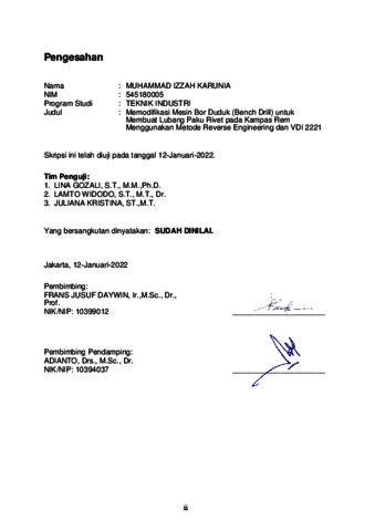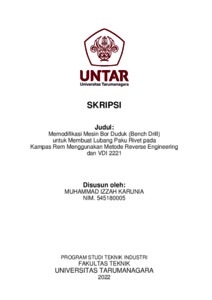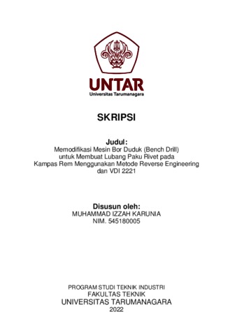 Karunia, Muhammad Izzah (2022) Memodifikasi mesin bor duduk (bench drill) untuk membuat lubang paku rivet pada kampas rem menggunakan metode revese engineering dan vdi 2221 (T. Ind - 723). Skripsi thesis, Universitas Tarumanagara.