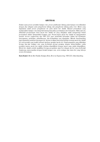 Dalam suatu proses produksi kampas rem, proses pembuatan lubang pada kampas rem dilakukan dengan dua tahapan yaitu pengeboran lubang dan pengeboran lubang paku rivet. Mesin yang digunakan untuk proses pengeboran ini yaitu mesin bor duduk. Banyak perusahaan yang memproduksi kampas rem mengeluh tentang banyaknya permintaan dari konsumen. Maka dari itu dibuatlah perancangan baru mesin bor duduk ini yang ditujukan untuk mengurangi beban perusahaan dalam memproduksi kampas rem. Perancangan mesin bor duduk ini menggunakan metode reverse engineering dan VDI 2221 agar memenuhi kelayakan dalam hal keamanan kenyamanan, perbaikan, pemeliharaan, dan kemudahan saat digunakan. Metode benchmarking juga digunakan untuk perancangan ini, karena terdapat banyak penelitian tentang mesin bor duduk ini serta produk yang sudah terkenal merknya menjual mesin ini. Untuk pengujian yang dilakukan berupa tipe-tipe kampas rem yang berbentuk persegi panjang dengan merperhatikan waktu produksi antara mesin bor duduk sebelum dimodifikasi dengan mesin yang sudah dimodifikasi Mesin bor duduk setelah modifikasi berupa pergantian meja bor dengan jig bor yang berbentuk lingkarang menyesuaikan dengan bentuk kampas rem, serta terdapat dua mata bor yang bekerja secara bersamaan. Kata Kunci: Mesin Bor Duduk, Kampas Rem, Reverse Engineering, VDI 2221, Benchmarking.