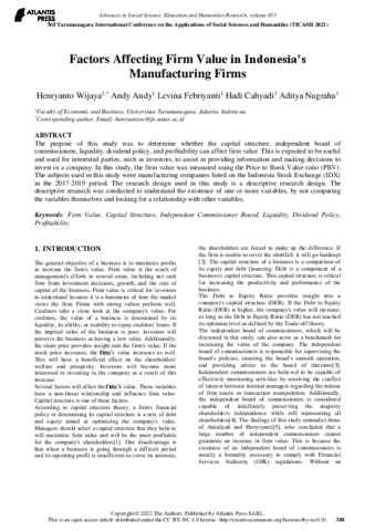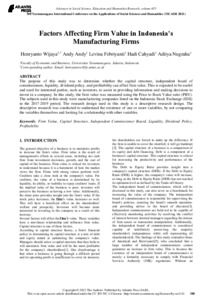 hadi cahyadi, Dokumen (2021) Factors Affecting Firm Value in Indonesia’s Manufacturing Firms. Factors Affecting Firm Value in Indonesia’s Manufacturing Firms. ISSN ISSN 2352-5398 / ISBN 978-94-6239-567-1