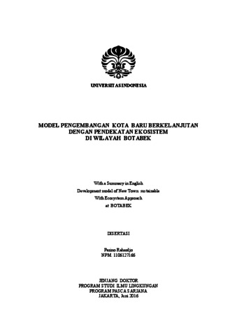 Rahardjo, Parino MODEL PENGEMBANGAN KOTA BARU BERKELANJUTAN DENGAN PENDEKATAN EKOSISTEM DI WILAYAH BOTABEK. MODEL PENGEMBANGAN KOTA BARU BERKELANJUTAN DENGAN PENDEKATAN EKOSISTEM DI WILAYAH BOTABEL.