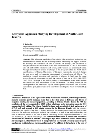 Rahardjo, Parino Ecosystem Approach Studying Development of North Coast Jakarta. 1234567890 IOP Conf. Series: Earth and Environmental Science 79 (2017) 012009.