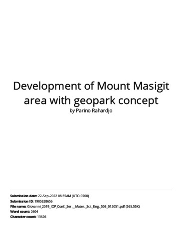 Rahardjo, Parino Development of Mount Masigit area with geopark concept. IOP Conf. Series: Materials Science and Engineering 508 (2019) 012051.