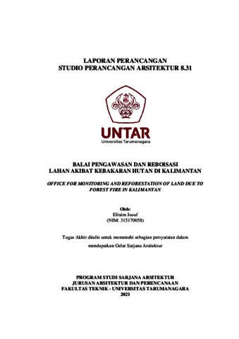 Jusuf, Efraim (2021) Balai pengawasan dan reboisasi lahan akibat kebakaran hutan di Kalimantan. Skripsi thesis, Universitas Tarumanagara.