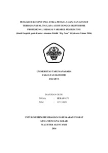Herawati, Herawati (2016) PENGARUH KOMPETENSI, ETIKA, PENGALAMAN, DAN GENDER TERHADAP KUALITAS JASA AUDIT DENGAN SKEPTISISME PROFESIONAL SEBAGAI VARIABEL MODERATING (Studi Empirik pada Kantor Akuntan Publik “Big Four” di Jakarta Tahun 2016). Masters thesis, UNIVERSITAS TARUMANAGARA.